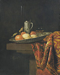 Vessels and a Squirrel, all on a Table Covered by a Persian Rug", mid 17th
