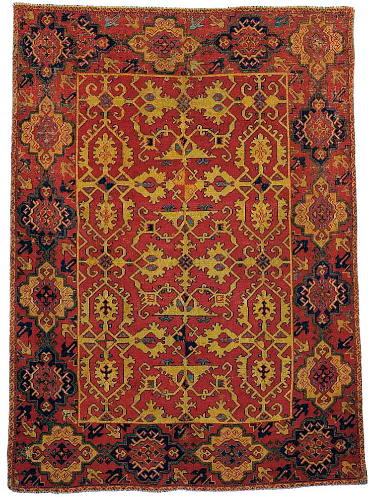 "Lotto" rug (Ornamented Style), early XVII century, Western Turkey, Ushak Region, Ottoman Empire. Moshe Tabibnia Collection (Formerly with Raymond Bernadout and John Eskenazi). Published in Hali 91. Size: 114x154cm |