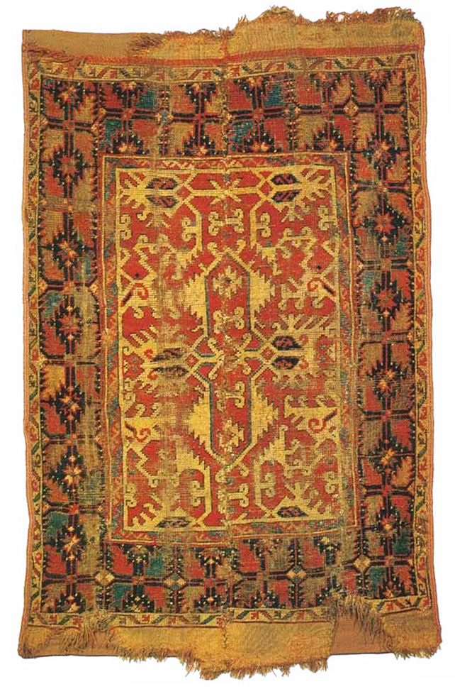 "Lotto" rug with serrated leaf main border, late XVII century, Western Turkey, Ushak Region, Ottoman Empire. 112x148cm. 620 knots/dm2. the Black Church, Brasov, inv. no: 154. Published in Stefano Ionescu's "Antique Ottoman rugs in Transylvania", cat 43 |