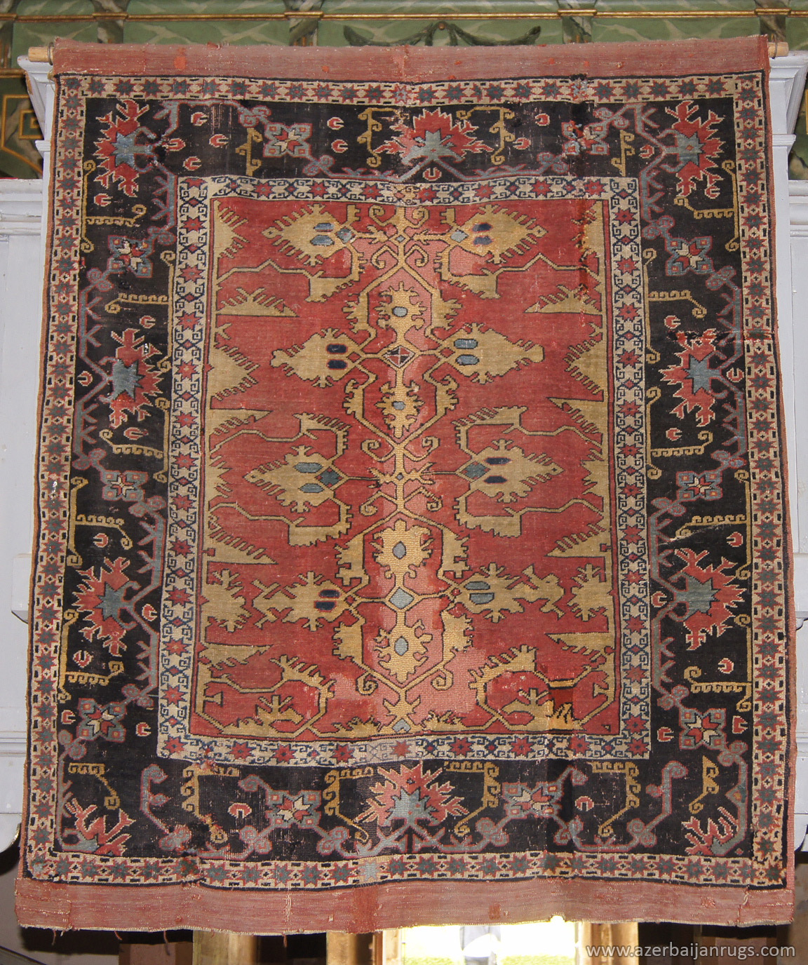 144x164cm. Knot density: 1100 knots/dm2 Published in Schmutzler 1933 & Behh Layer 1925, also in Stefano Ionescu's "Antique Ottoman rugs in Transylvania"