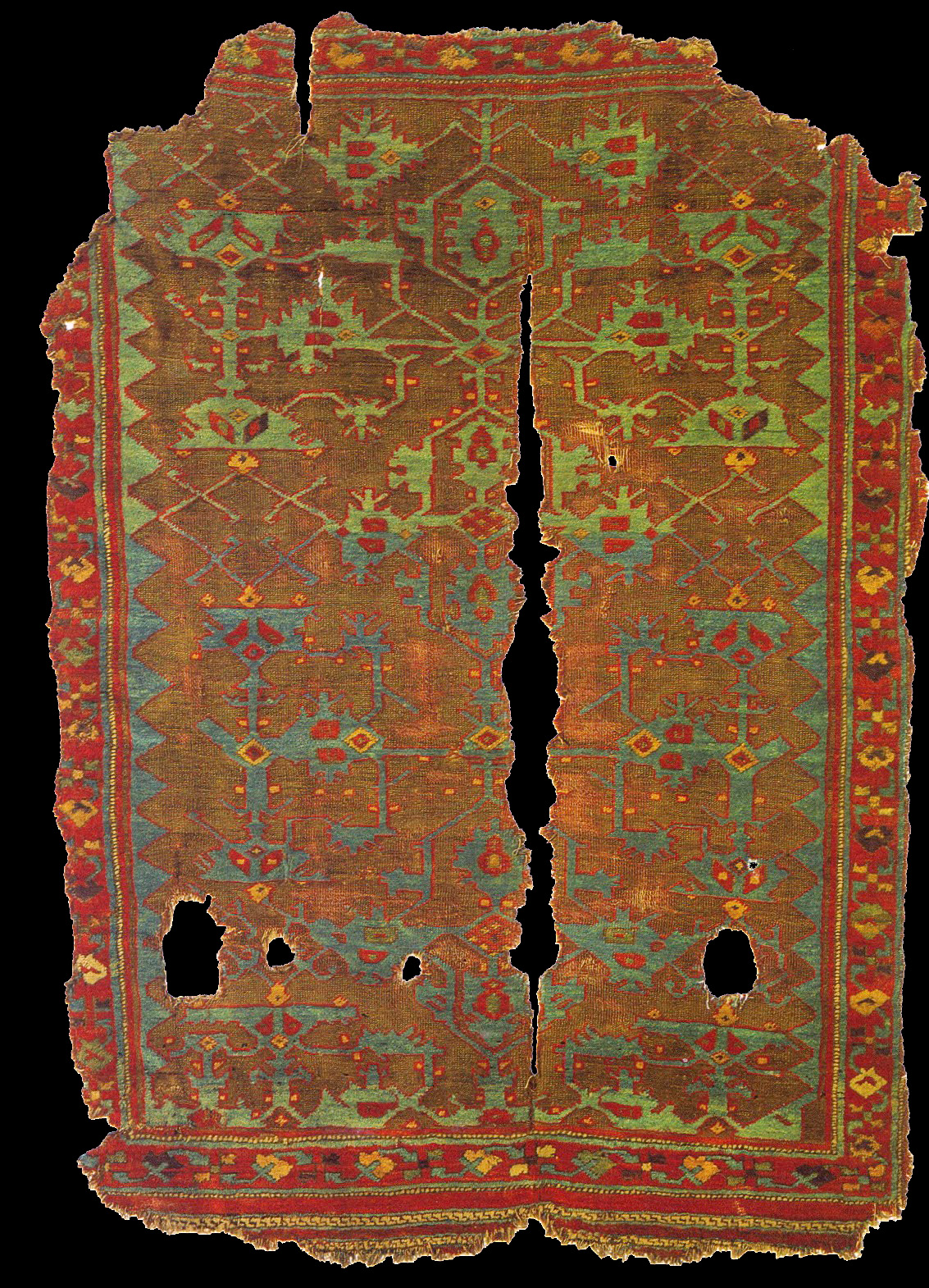 Anatolian "Lotto" village rug, 17th century. Vakiflar Museum, Istanbul. discovered at Divriği Ulu Mosque, Sivas Province. 110x156cm (30hx40v)