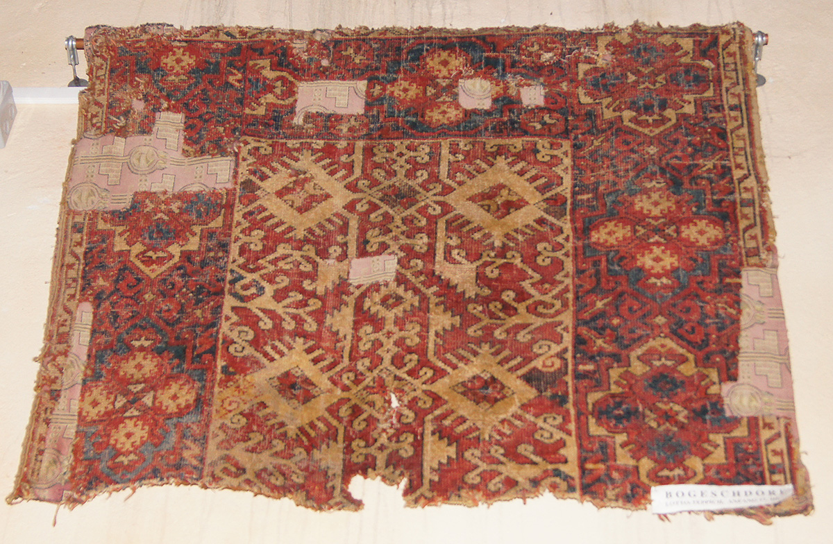 "Lotto" arabasque rug fragment, XVII century, Western Turkey, Ushak Region. St Margaret''s Church, Medias (Mediasch) {Biserica Fortificata Din Medias}