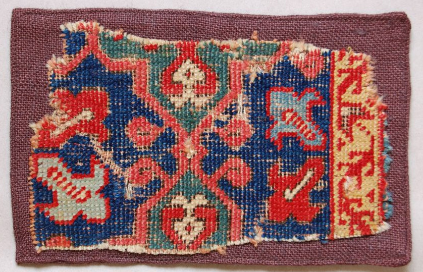 "Lotto" rug fragment, XVI century, Western Turkey, Ushak Region, Ottoman Empire. Iparmuveszeti Muzeum (Museum of Applied Arts), Budapest. Inventory number: 2008.43.1; Size: 15 x 24 cm |