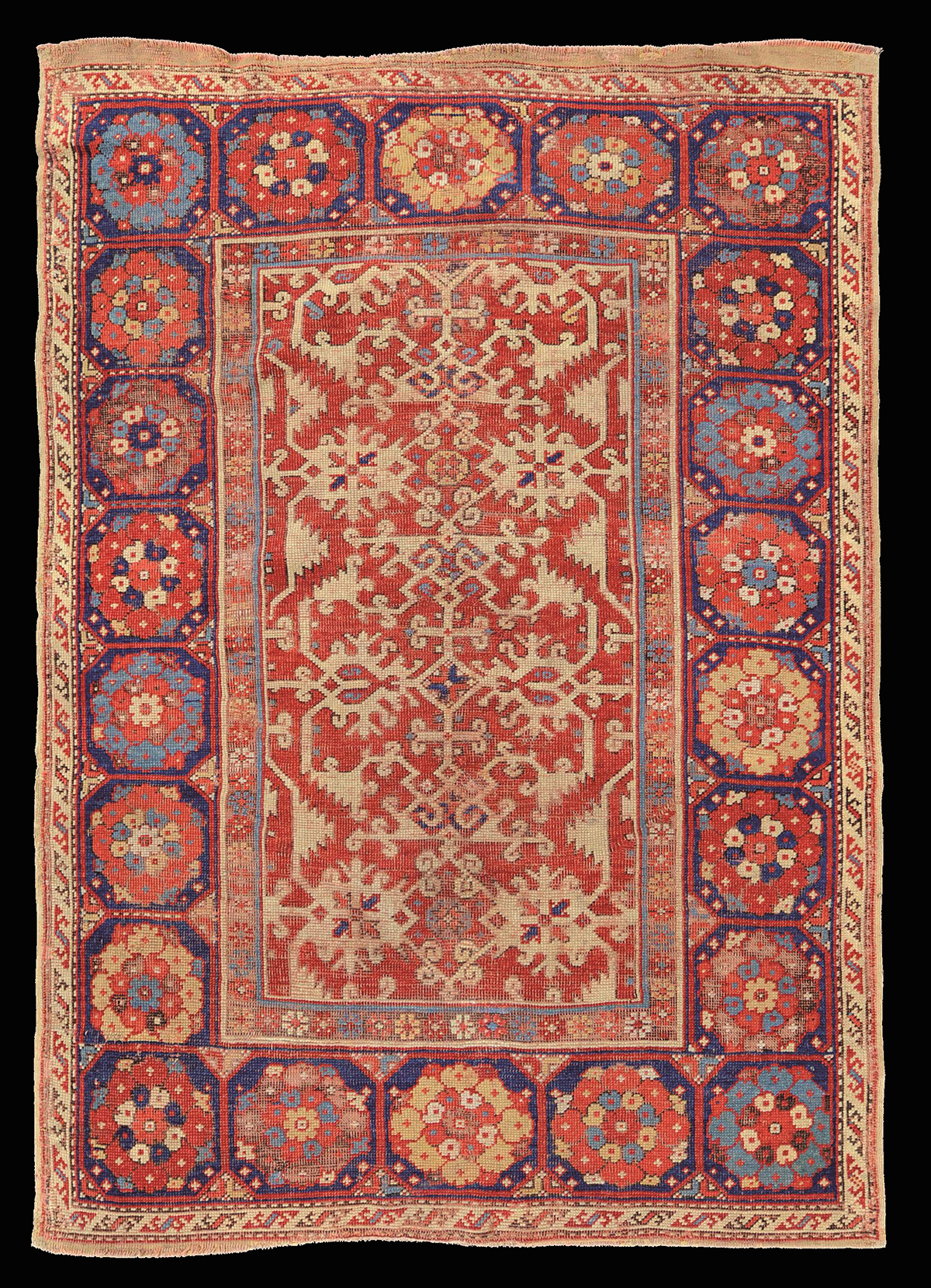 "Lotto" carpet, XVII century, Western Turkey, Ushak Region, Ottoman Empire. 122x188cm. Paulette Goddard/Remarque; Herrmann; Bausback Collections