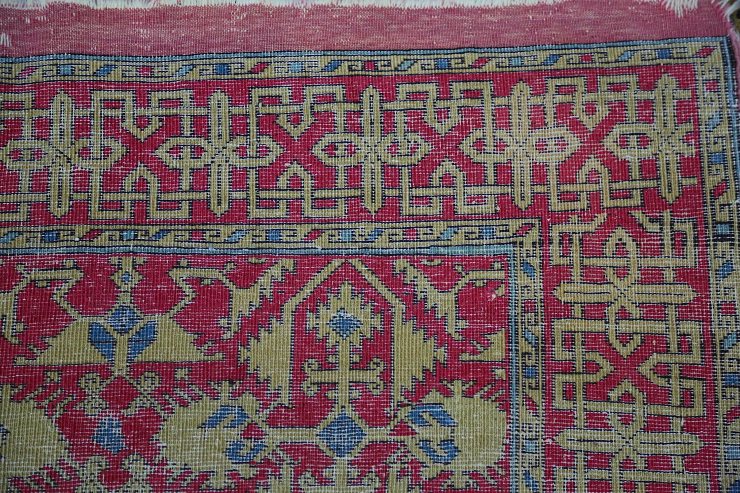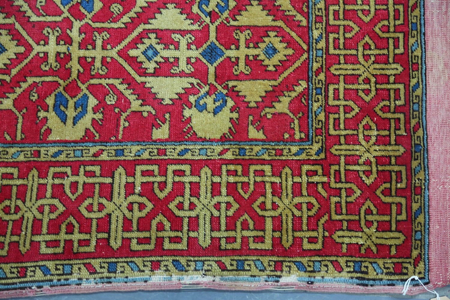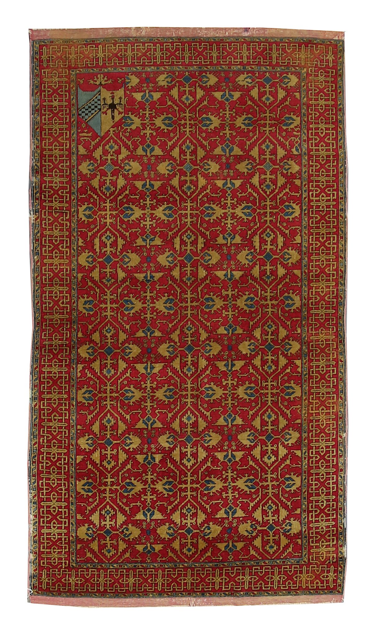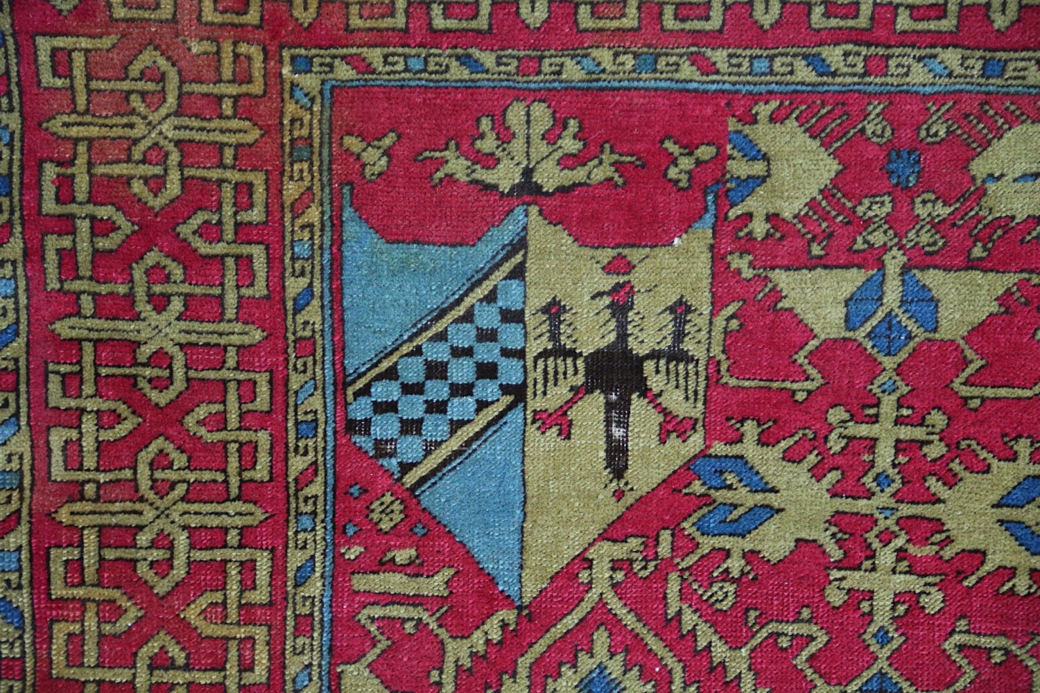 one of inner corners depicting Coat of Arms. Ends with original kilim,