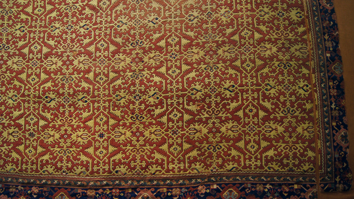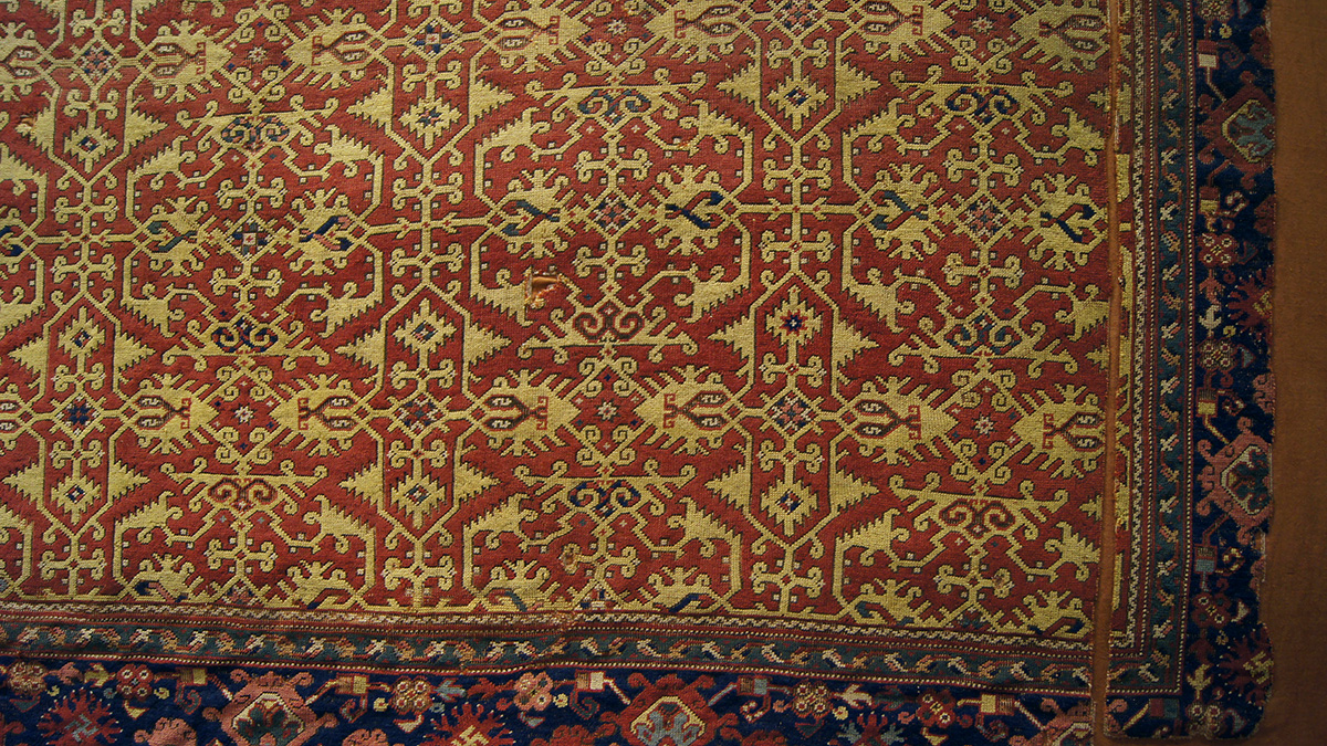"Lotto" carpet, second half XVI century, Western Turkey, Ushak, Ottoman Empire. Turkish and Islamic Arts Museum, Istanbul, inv. no: 702. 275x518cm. from the Murad Pasha Mosque in Antalya |