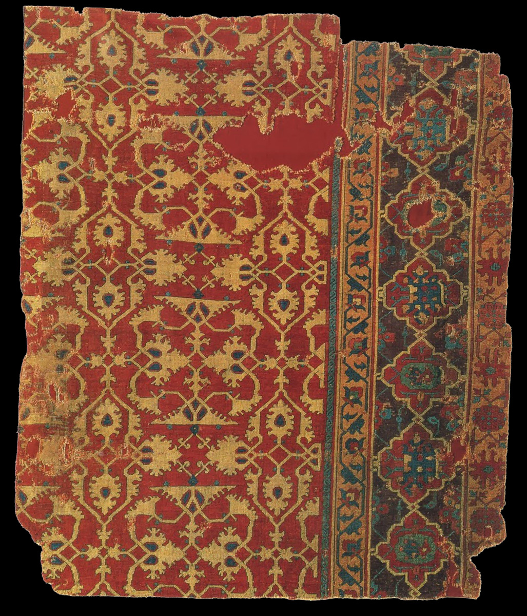 "Lotto" carpet fragment ("Anatolian" style), XVI century, Western Turkey, Ushak Region, Ottoman Empire. Wolf Collection, New York (published in Hali 92), 119x146cm.