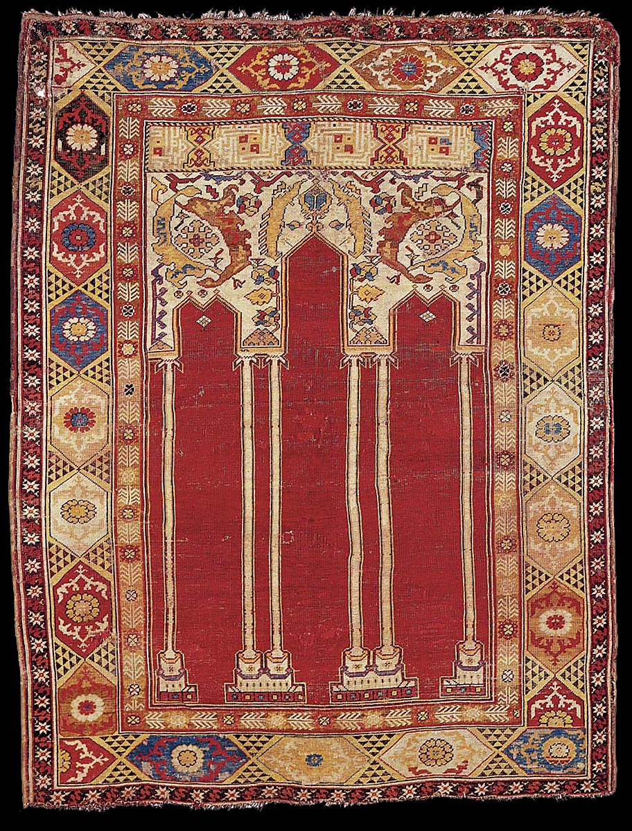 "Transylvanian" prayer rug, Turkey, first half 17th century. Iparmuveszeti Muzeum, Budapest (Museum of Applied Arts, Budapest), inv. no: 51.114.1. Acquisition from: - ex-collection of György Ráth (1828-1905)