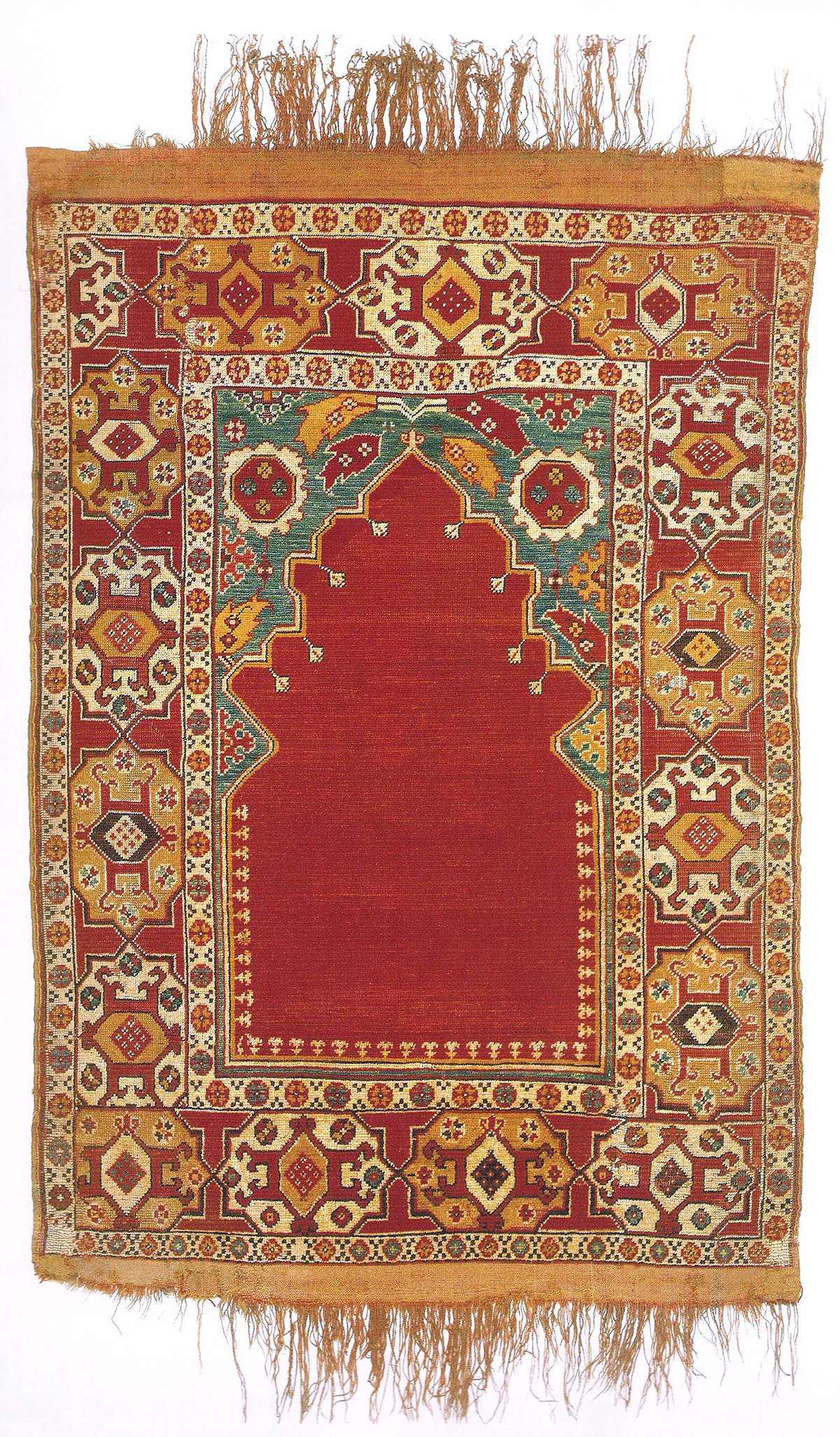 "Transylvanian" prayer rug / sejjadeh, Western Turkey, late 17th century, Ottoman Empire. Black Church, Braşov, inv. no 175