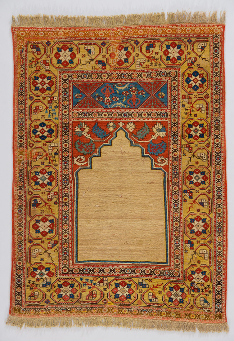"Transylvanian" prayer rug, Western Turkey, possible Gördes, late 17th century, Ottoman Empire. Iparmuveszeti Muzeum, Budapest (Museum of Applied Arts, Budapest), inv. no: 54.377.1 |