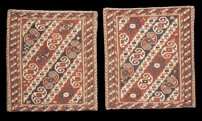 Antique Caucasian khurjun bag faces, 19th century, Khyzy (Khizi, Xızı) District (south of Shabran (Devechi), north west of Baku), Azerbaijan