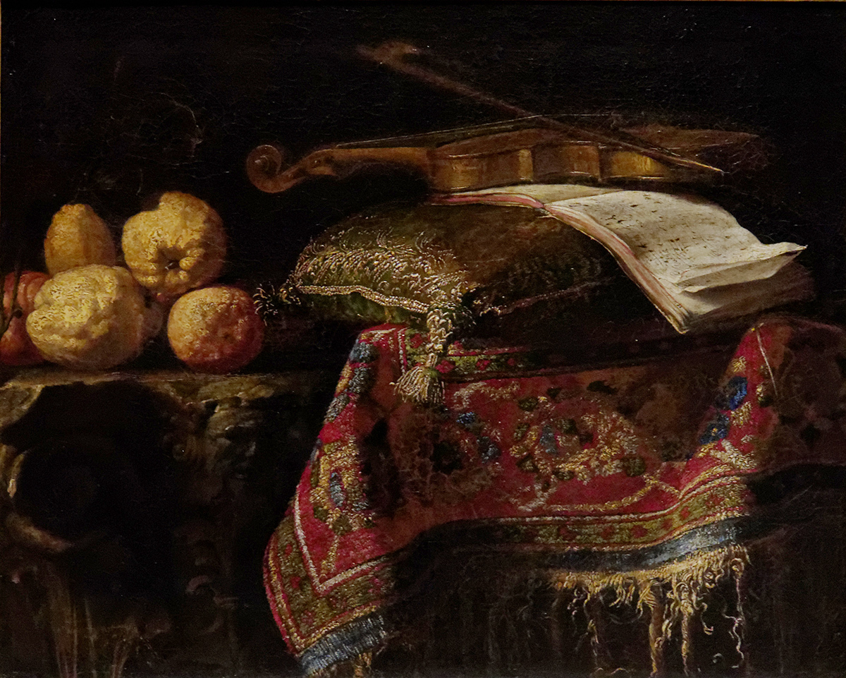 "Still Life with a Turkish Carpet, Lemons and a Violin", c 1650, by Francesco Fieravino (also known as Francesco Noletti and "Francesco Maltese"). Musée du Louvre, Paris. Inv. no. MI891