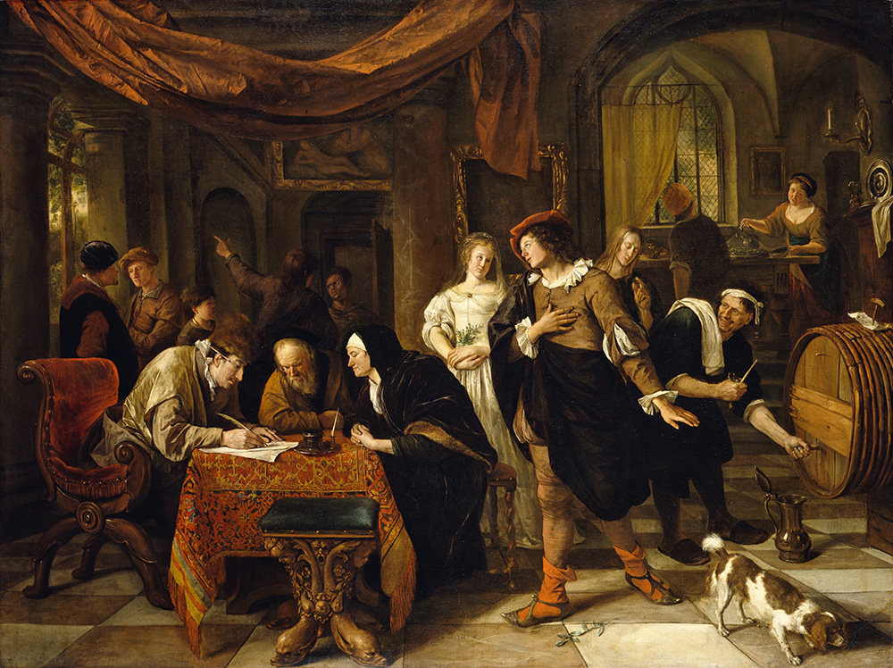 "The Wedding of Tobias and Sarah", 1667–1668, by Jan Steen (1626–1679), 131 × 172 cm, oil on canvas, Herzog Anton Ulrich Museum, Braunschweig
